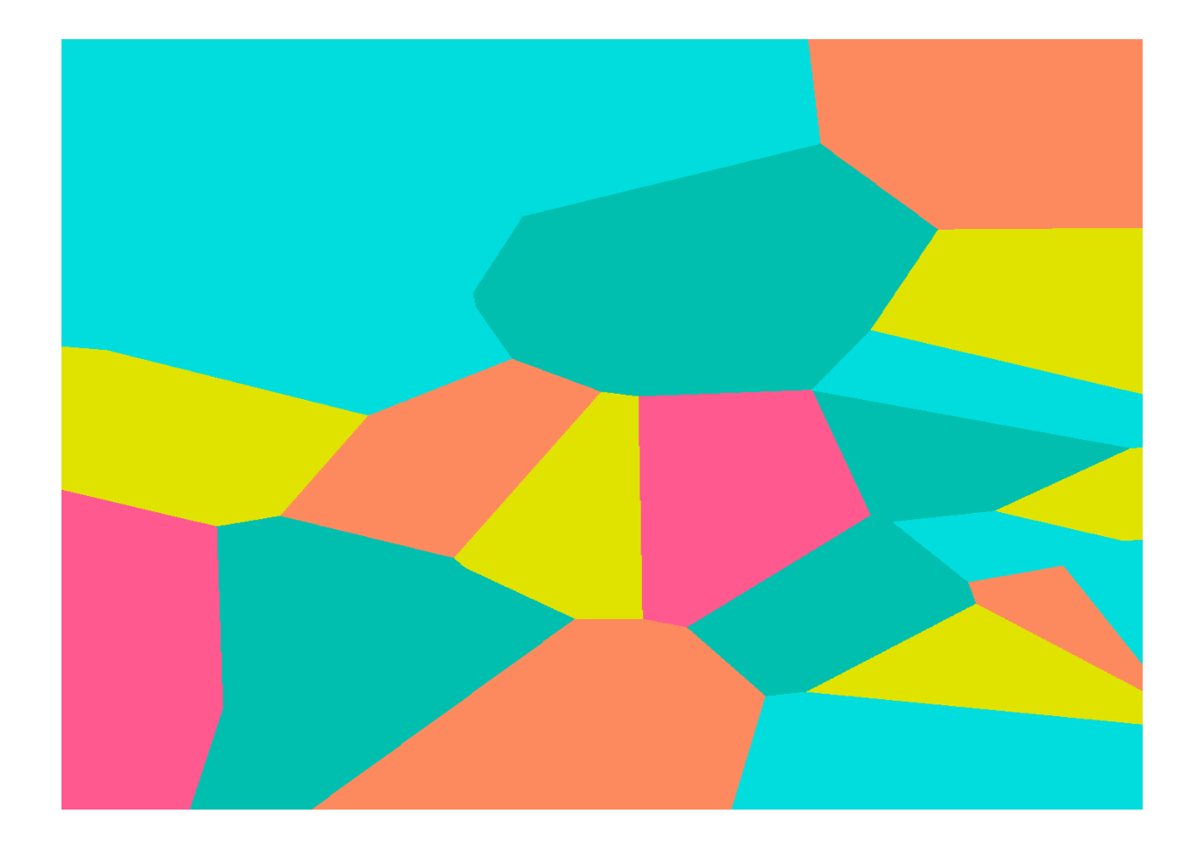 , que utiliza una variedad de cuadrados y rectángulos en lugar de líneas. Funciona cortando repetidamente el lienzo en ubicaciones aleatorias y coloreando el área que crean estos cortes: